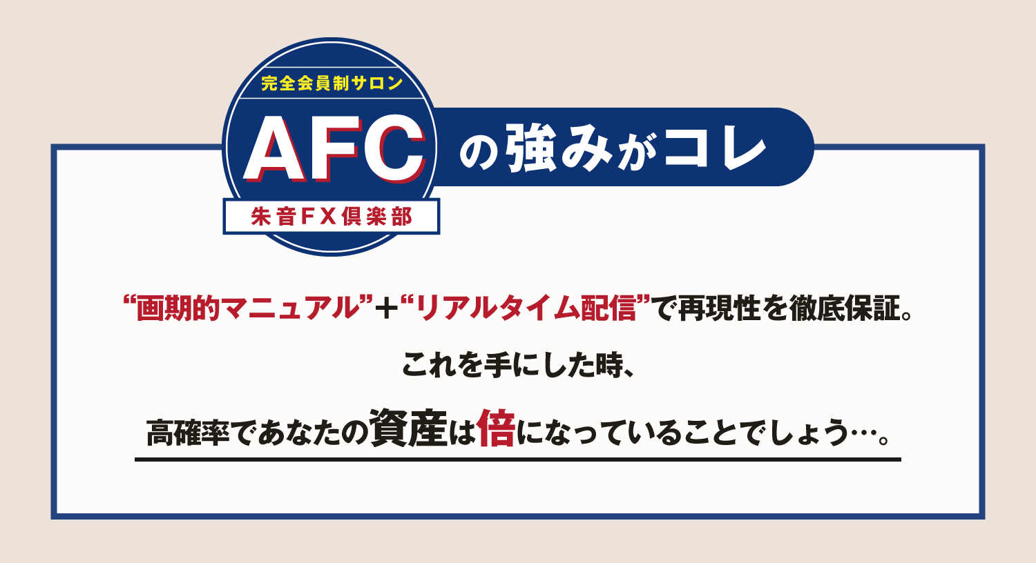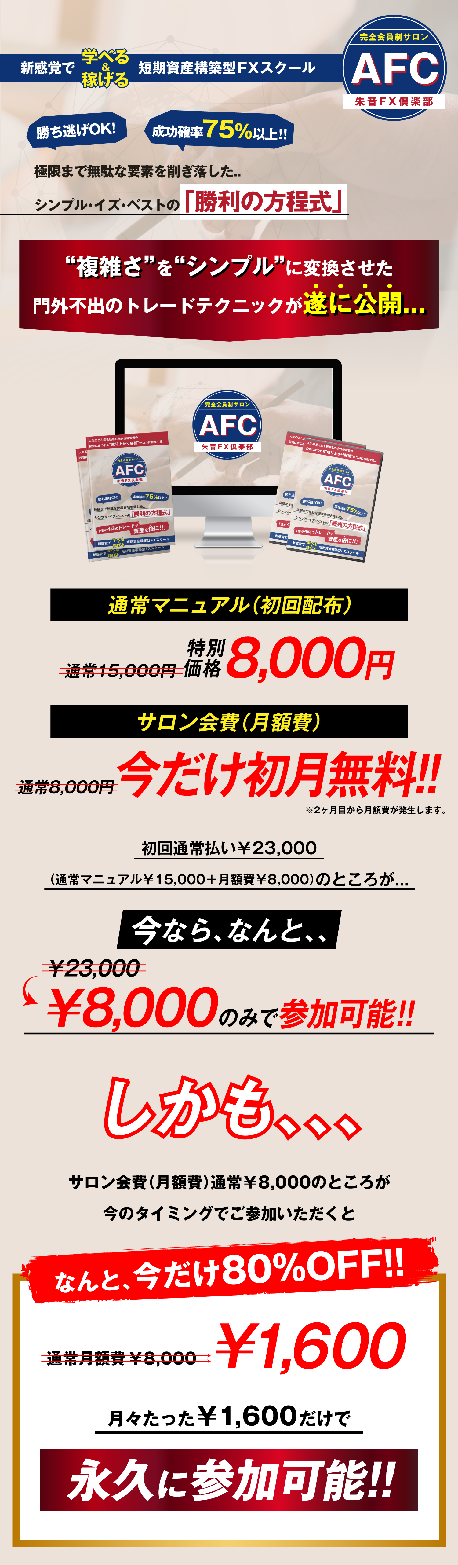 あなたにとって、≪完全会員制サロン≫ AFC -朱音(あかね) FX倶楽部が最後の商品となることを心から願っております…。