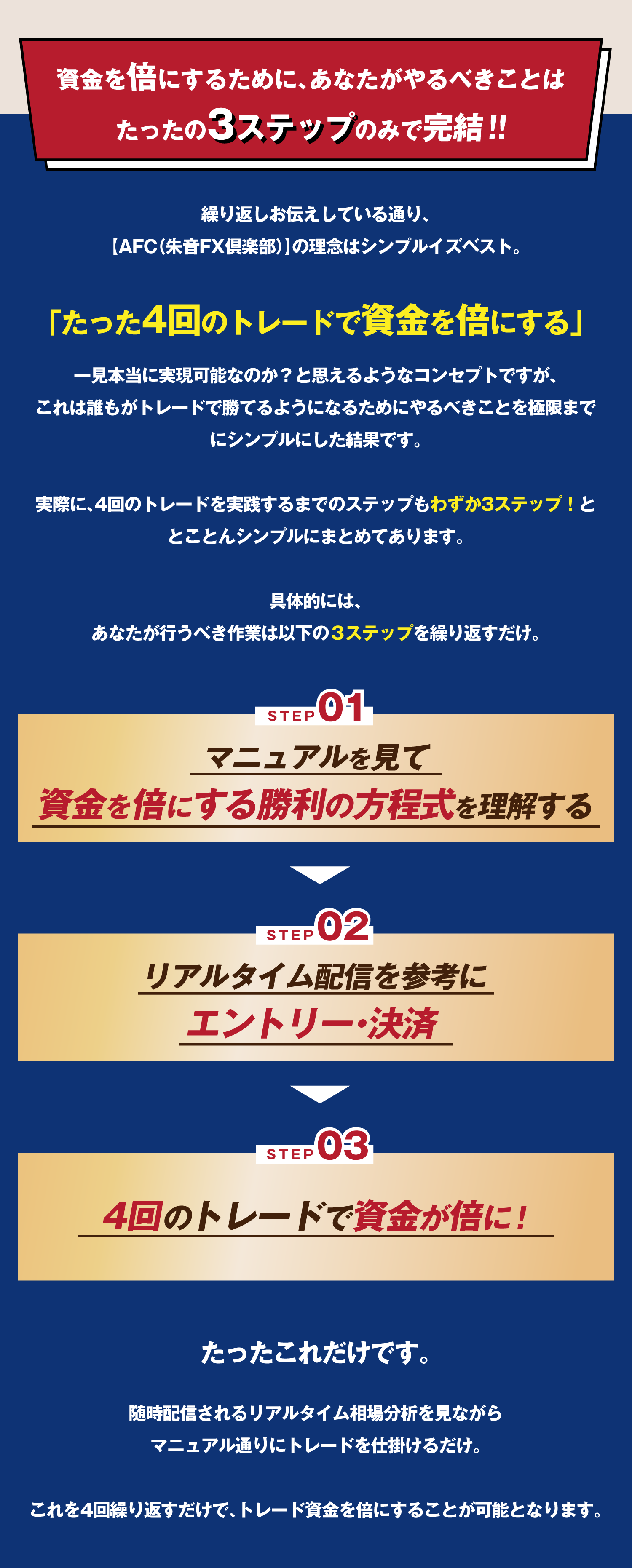 『たった4回のトレードで資金を倍にする』という至ってシンプルな手法。